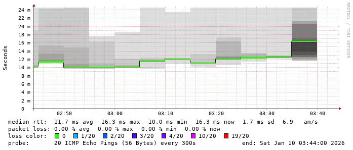 2. Median RTT 0.032100 seconds